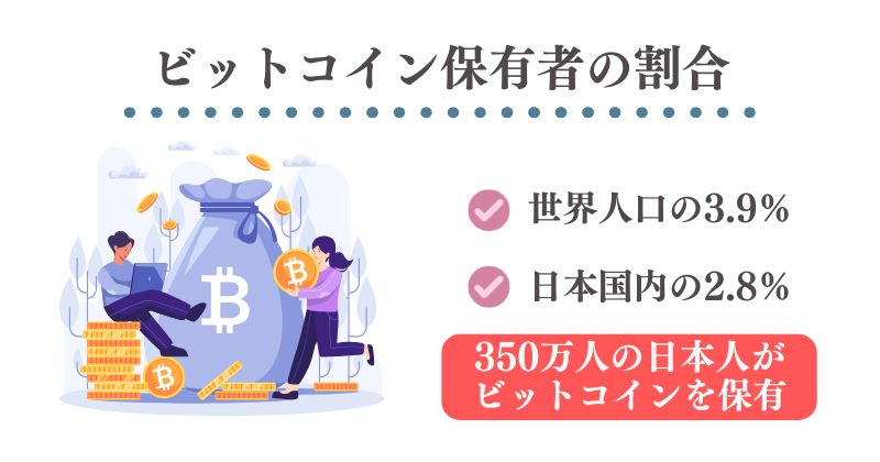 また、日本国内におけるビットコイン保有者の割合は、「2.8%程度」であると推定可能です。